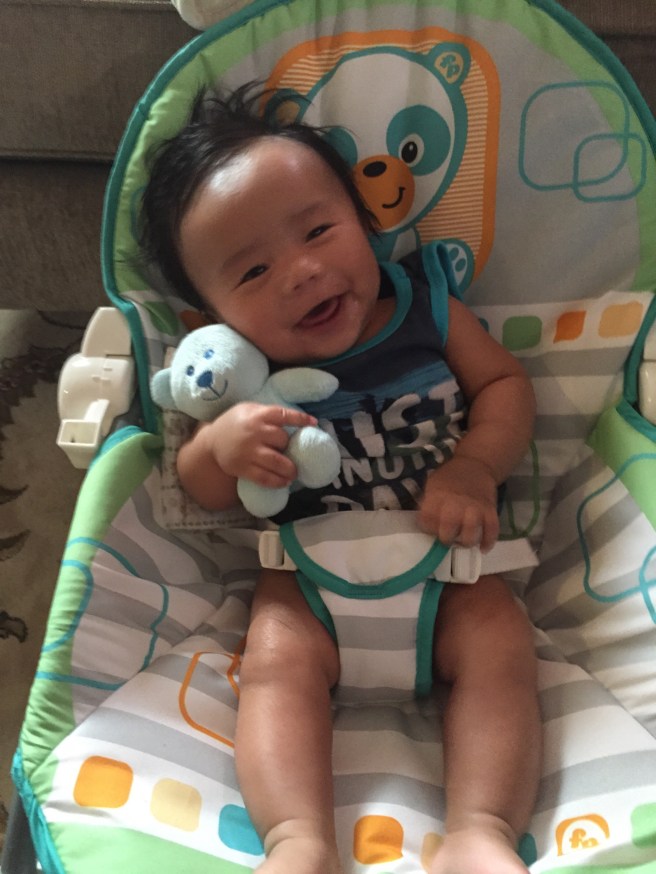 Little Max is a supported sitter now, can roll over on his own, and loves splashing in the bath! He’s getting so big. He also knows how to peek a boo! I mean I am his mommy but I can tell he’s going to be a charmer!