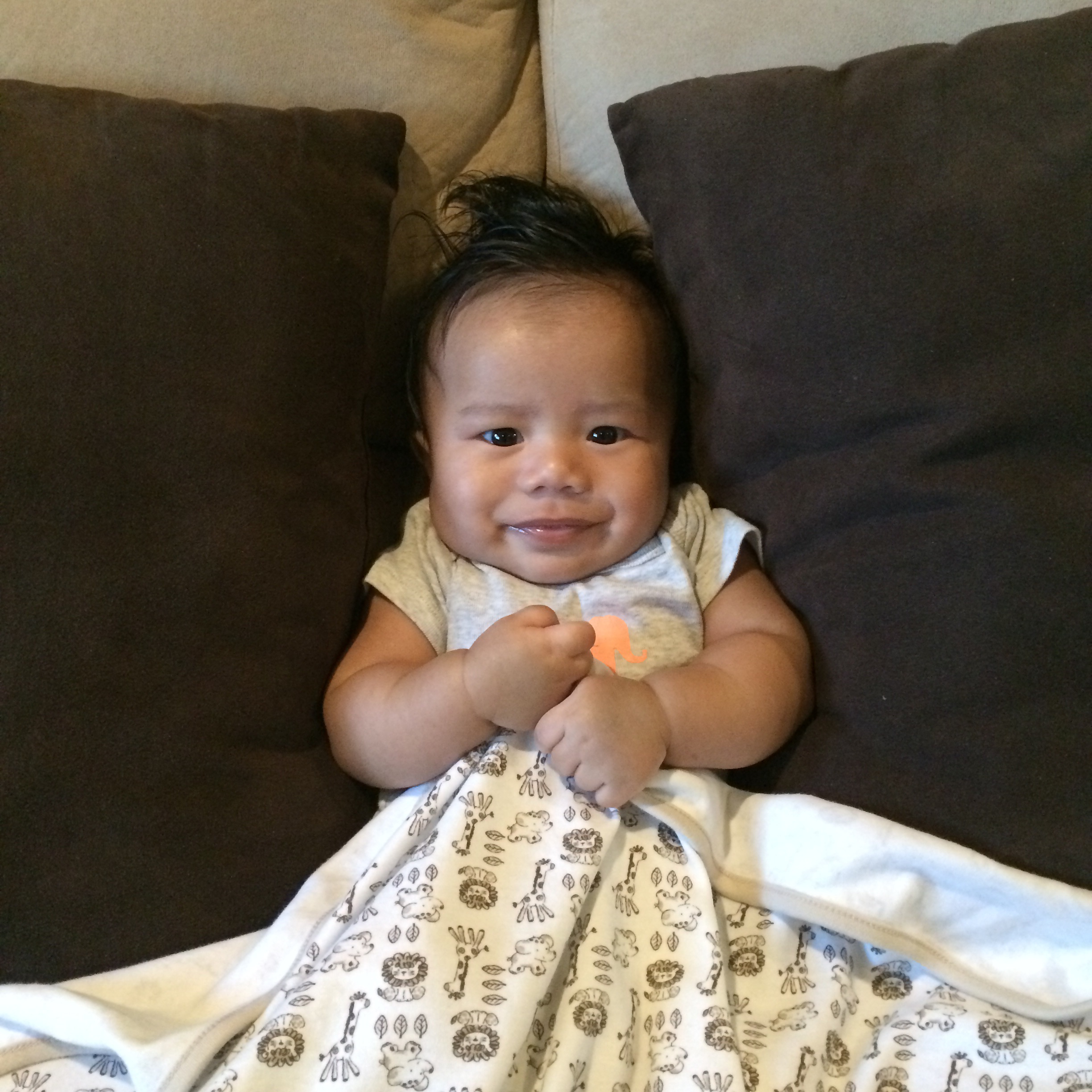 Little Max is a supported sitter now, can roll over on his own, and loves splashing in the bath! He’s getting so big. He also knows how to peek a boo! I mean I am his mommy but I can tell he’s going to be a charmer!
