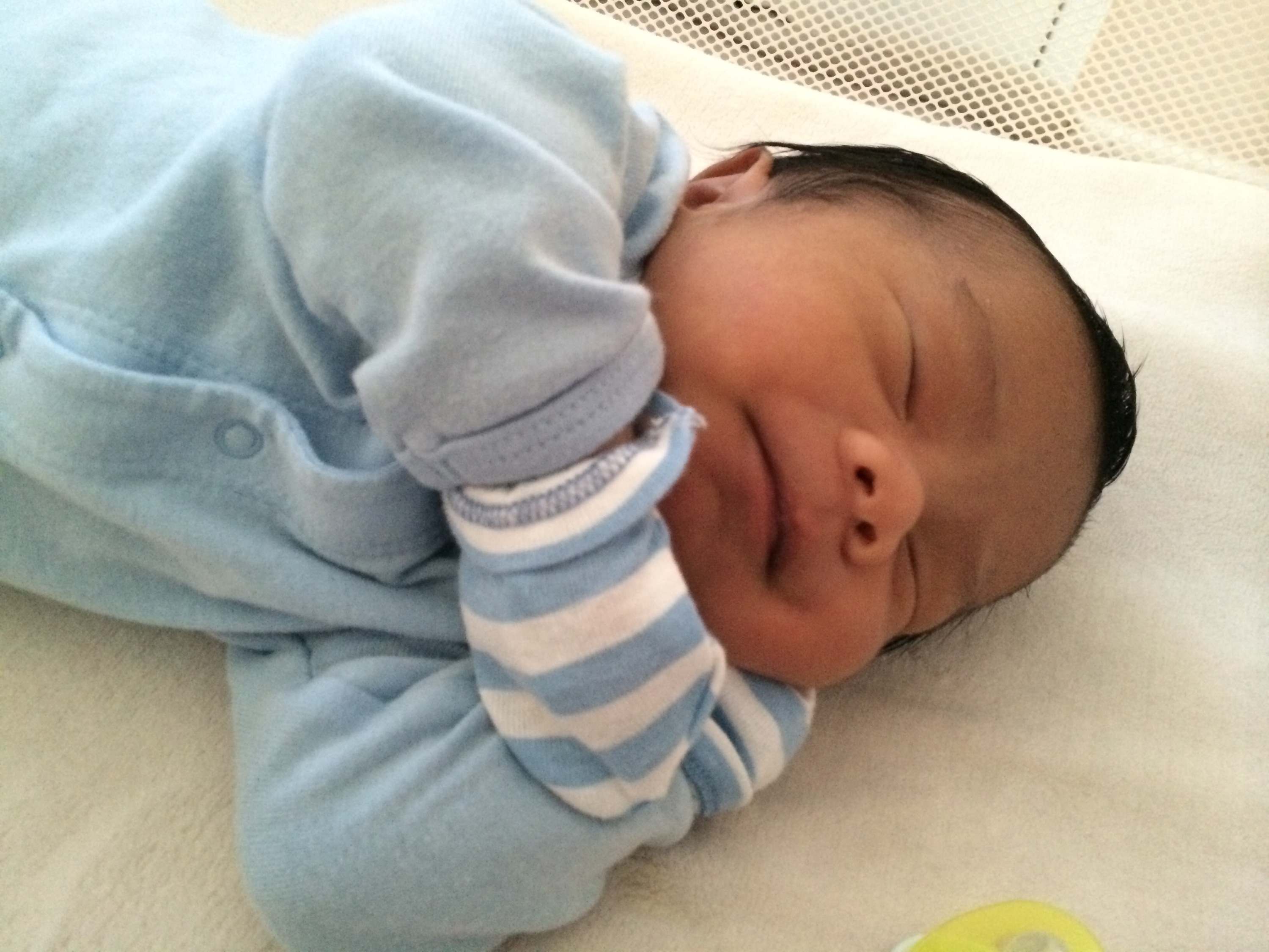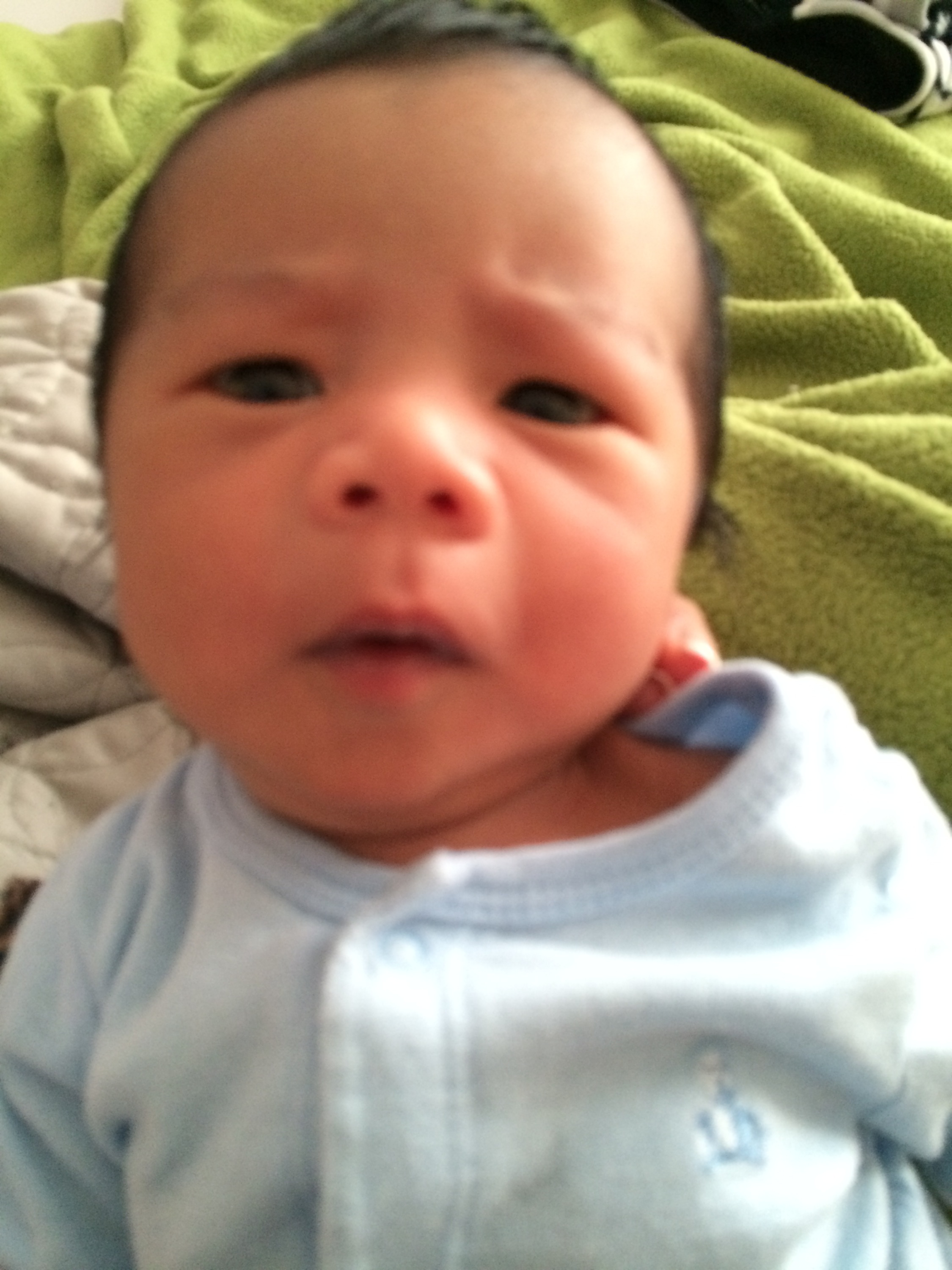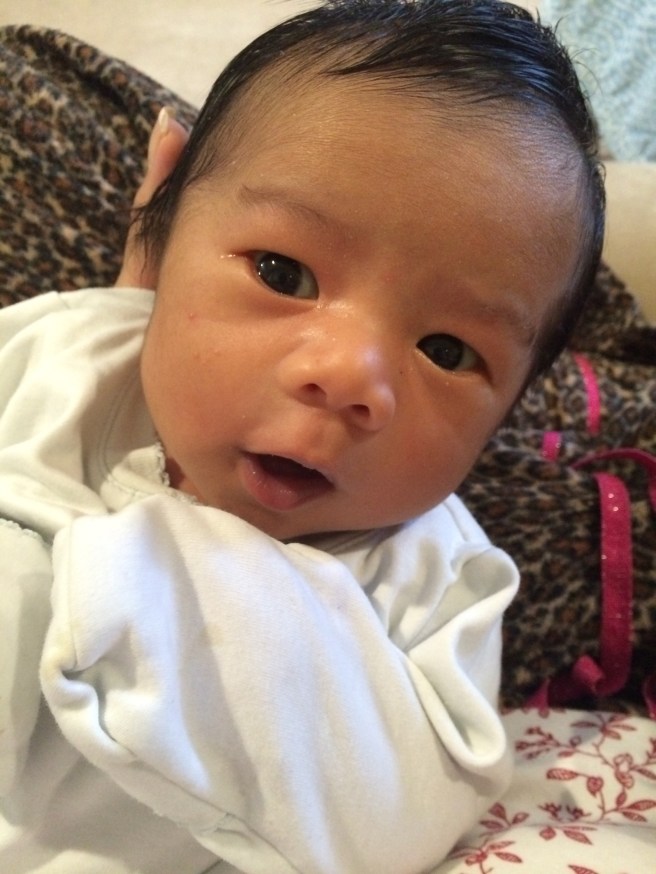 Hi! My name is Max, I’m so strong and like to hold my head up and stare at Mommy!